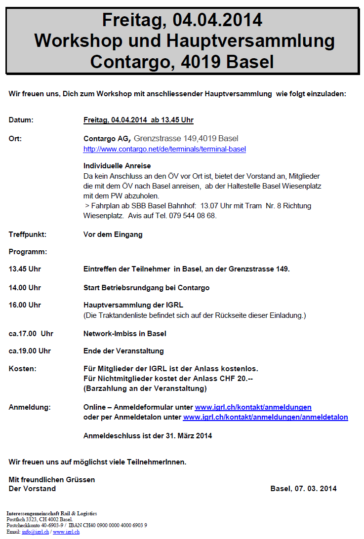 IGRL Interessengemeinschaft Rail & Logistics Postfach 4000 Basel Mail: info@igrl.ch