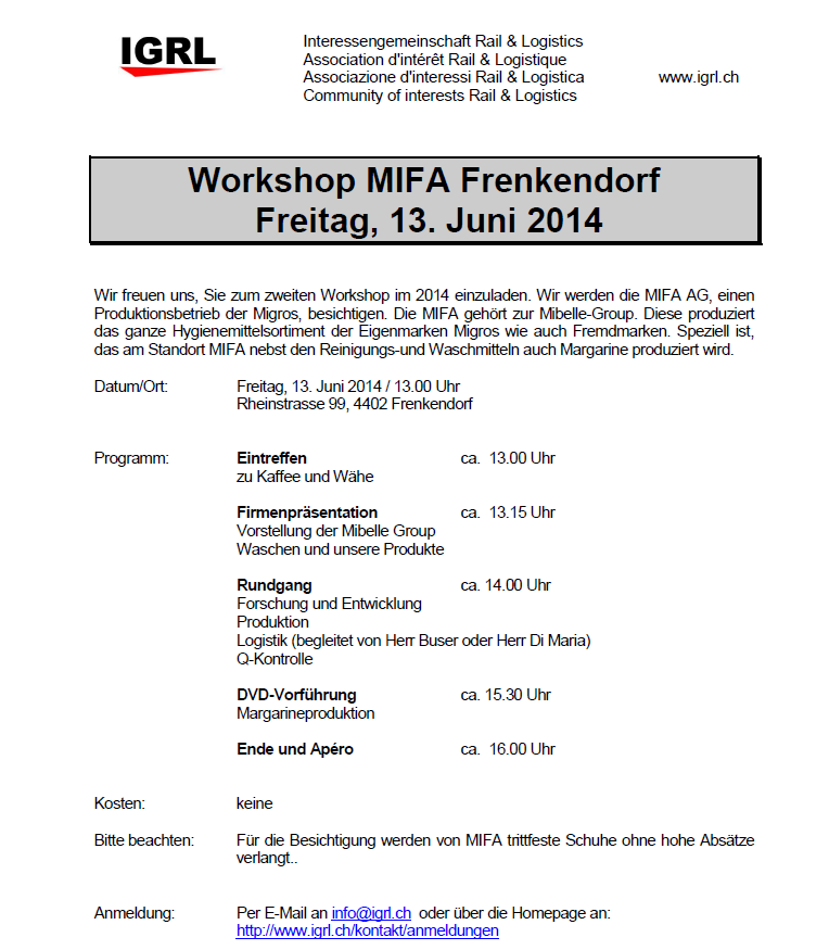 IGRL Interessengemeinschaft Rail & Logistics Postfach 4000 Basel Mail: info@igrl.ch